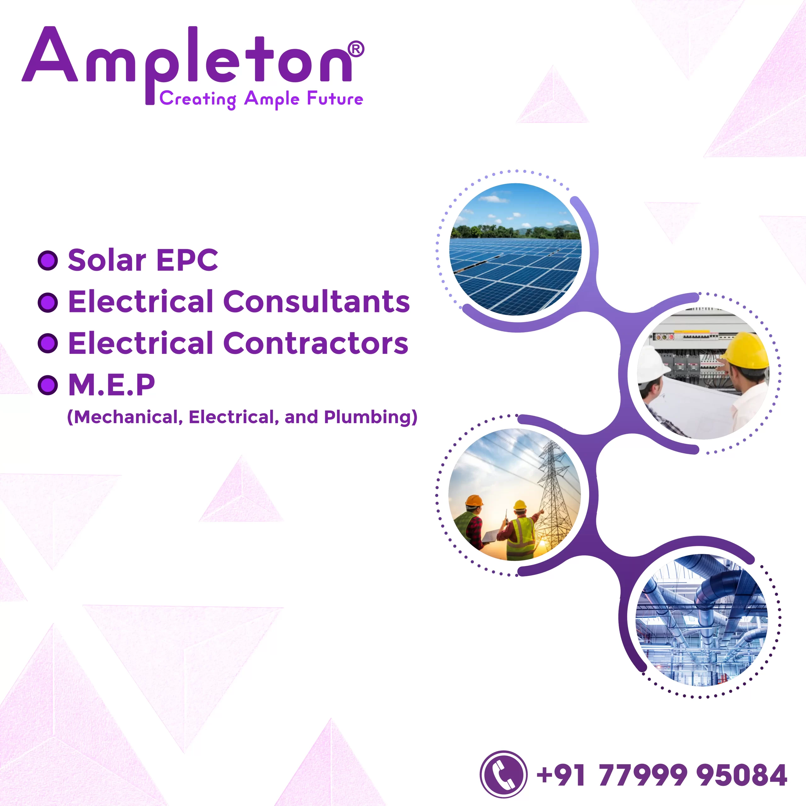 Ampleton® is a service-based company, founded in May 2018, with core expertise in Mechanical, Electrical & Plumbing (MEP) and Solar EPC services. We are dedicated to addressing power-related challenges by providing innovative and technically sound solutions.